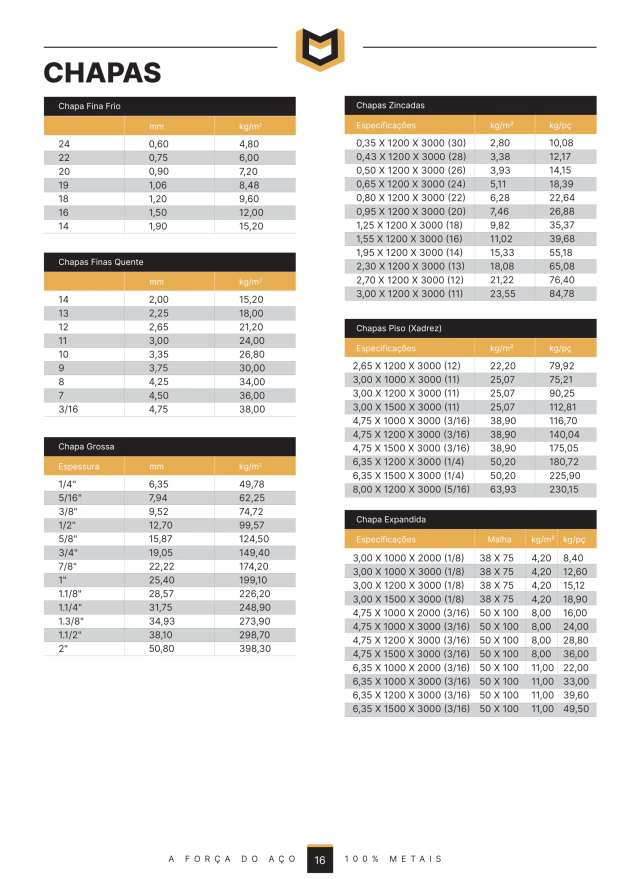 *** ESPESSURA DA CHAPA NO TÍTULO DO ANÚNCIO. UTILIZE AS CAIXAS SELETORAS PARA ESCOLHA DA LARGURA E COMPRIMENTO DA CHAPA ***