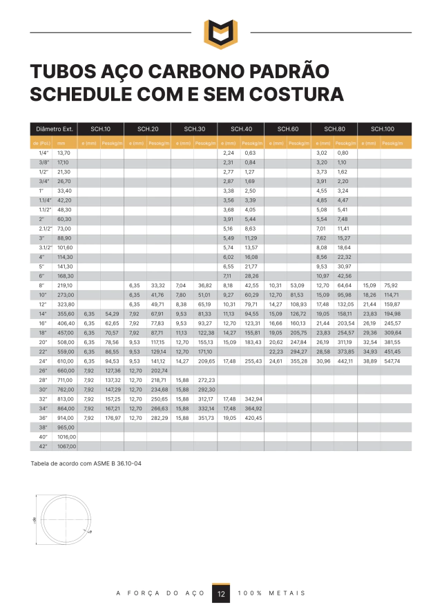 *** DIÂMETRO DO TUBO NO TÍTULO DO ANÚNCIO. UTILIZE A CAIXA SELETORA PARA ESCOLHA DA VARIAÇÃO DE SCHEDULE (ESPESSURA DE PAREDE) E COMPRIMENTO DO TUBO ***