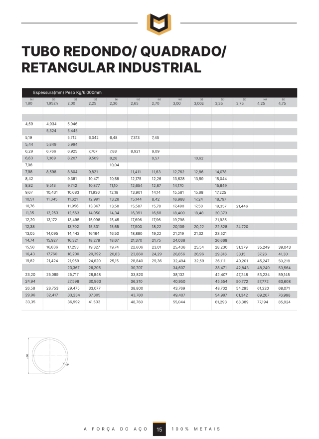 *** DIÂMETRO DO TUBO NO TÍTULO DO ANÚNCIO. UTILIZE A CAIXA SELETORA PARA ESCOLHA DA ESPESSURA DE PAREDE E COMPRIMENTO DO TUBO ***