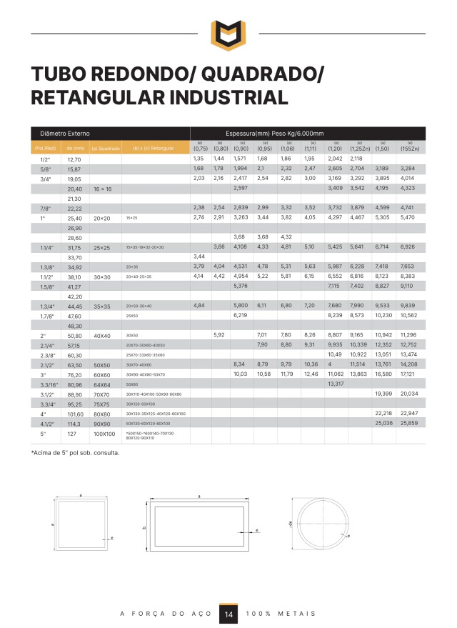 São tubos de aço com seção retangular, classificados como tubos com COST.ura, também conhecidos como tubo preto ou metalon. O tubo retangular é versátil, acessível e caracterizado pela leveza aliada à resistência e durabilidade. Sendo utilizado para diversas finalidades, seja na construção civil, na indústria, serralharia, metalurgia, fabricação de móveis, peças e outros.